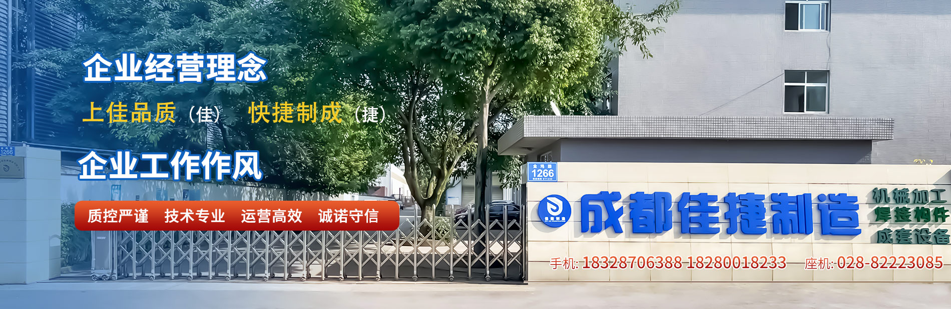 成都佳捷制造(包括成都佳捷精密機械制造有限公司和成都佳捷機械制造有限公司)是一家專業從事機械加工及焊接結構件加工、成套設備產和銷售的綜合性配套企業。是中國中鐵鐵科院、世界******企業梅特勒—托利多、中建環能德美、四川嘉拓智能設備制造有限公司等的認證供應商。公司以“上佳品質,快捷制成”為企業經營理念,建立了高效、立體的技術、質保、生產、服務四位一體的運營體系。